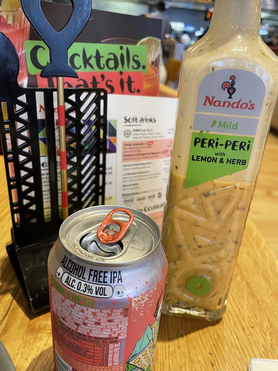 What a delightful surprise. Never been to Nandos before, it was a little co fusing at first and they set you at a. Table but you order at counter. Kinda like restaurant meal with fast food style ordering. The food however was great. The grilled chicken in all the meals was very good and the sauces were correctly described for their heat. The bottomless pop (free refills) was an unexpected benefit. The choices of sides and combinations is really accommodating and everyone can find what they would like and the heat they enjoy. I was pretty surprised as all I expected was typical “fast food” quality but this place has been better than most of the restaurants we have eaten at here in London. You should give it a try.